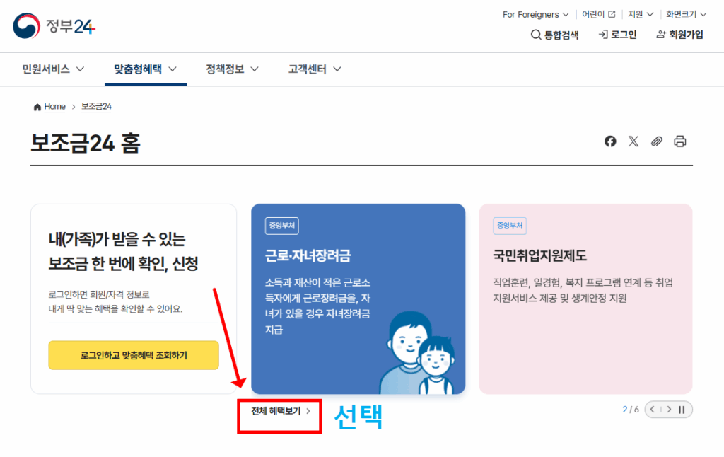 - 개인(가구): 나와 가족에게 맞는 보조금