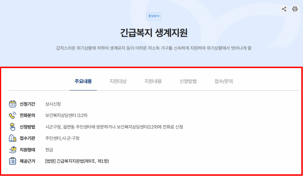 주소득자의 사망, 실직, 질병 등으로 인해 생계가 어려워진 가구에 생계비, 의료비, 주거비 등을 신속하게 지원합니다.