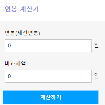 양식에 맞게 입력한 뒤 계산하기 버튼을 눌러 연봉 또는 월급의 실수령액을 바로 확인할 수 있습니다